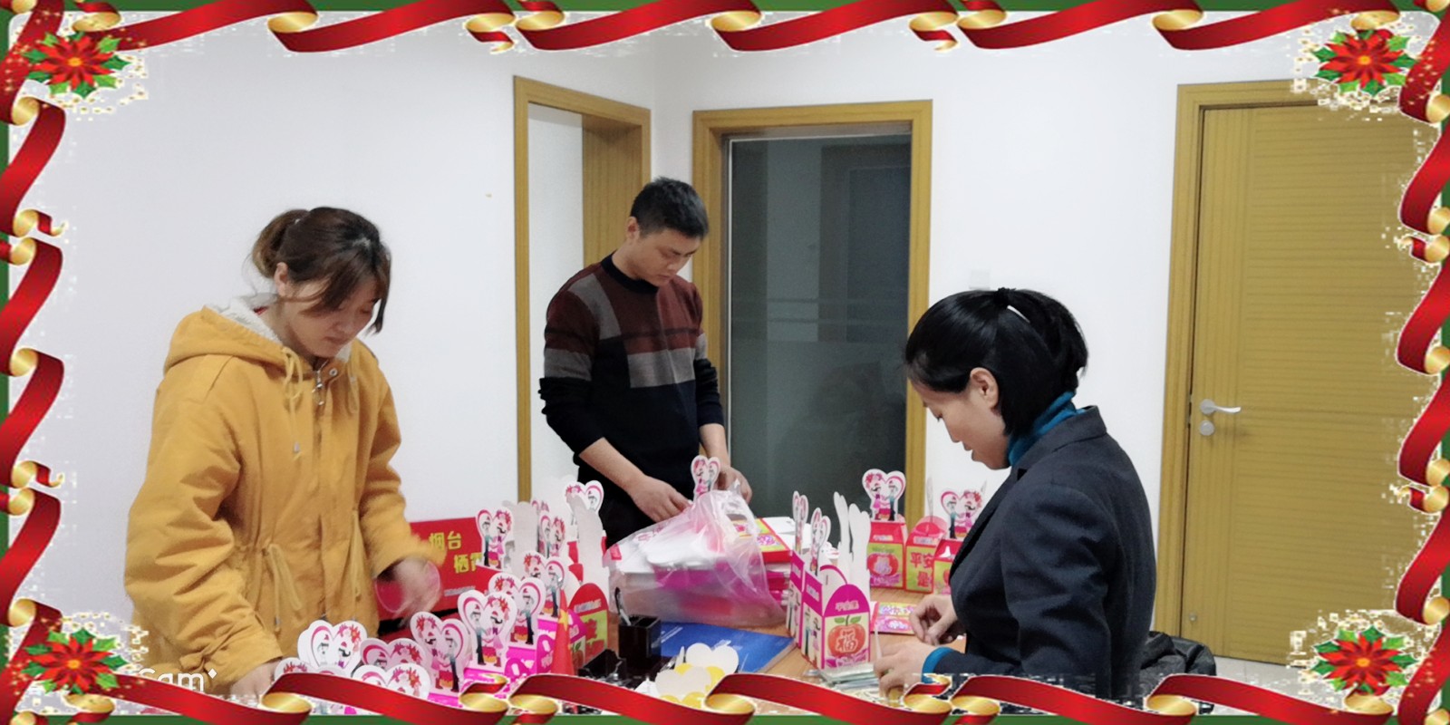 此刻我们正在努力包装圣诞的礼物,即将为你们送上最真挚的祝福!苹果代表着平平安安,愿华强全体员工一生平平安安!橙子代表爱情,愿在华强努力工作的你们爱情长久、生活美满!